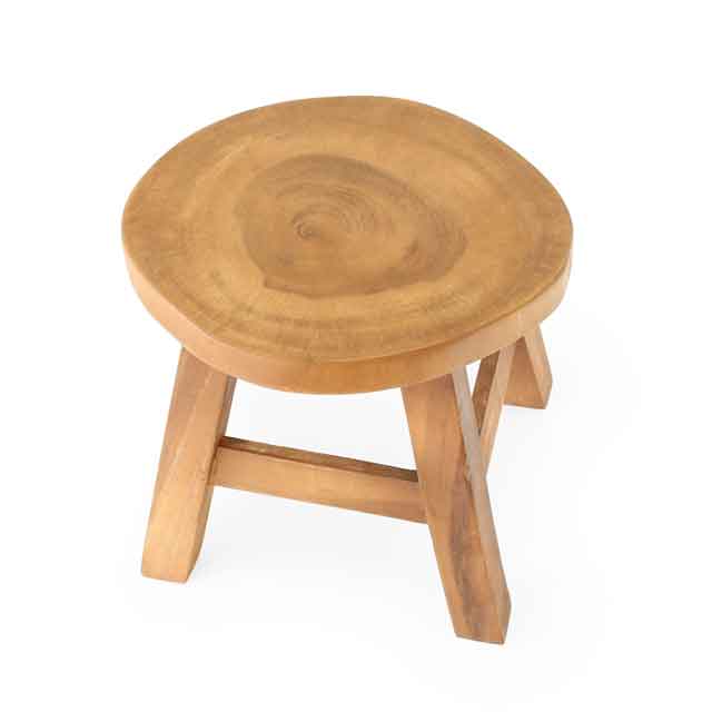 アカシアの切り株をそのまま天板に生かしたスツール。